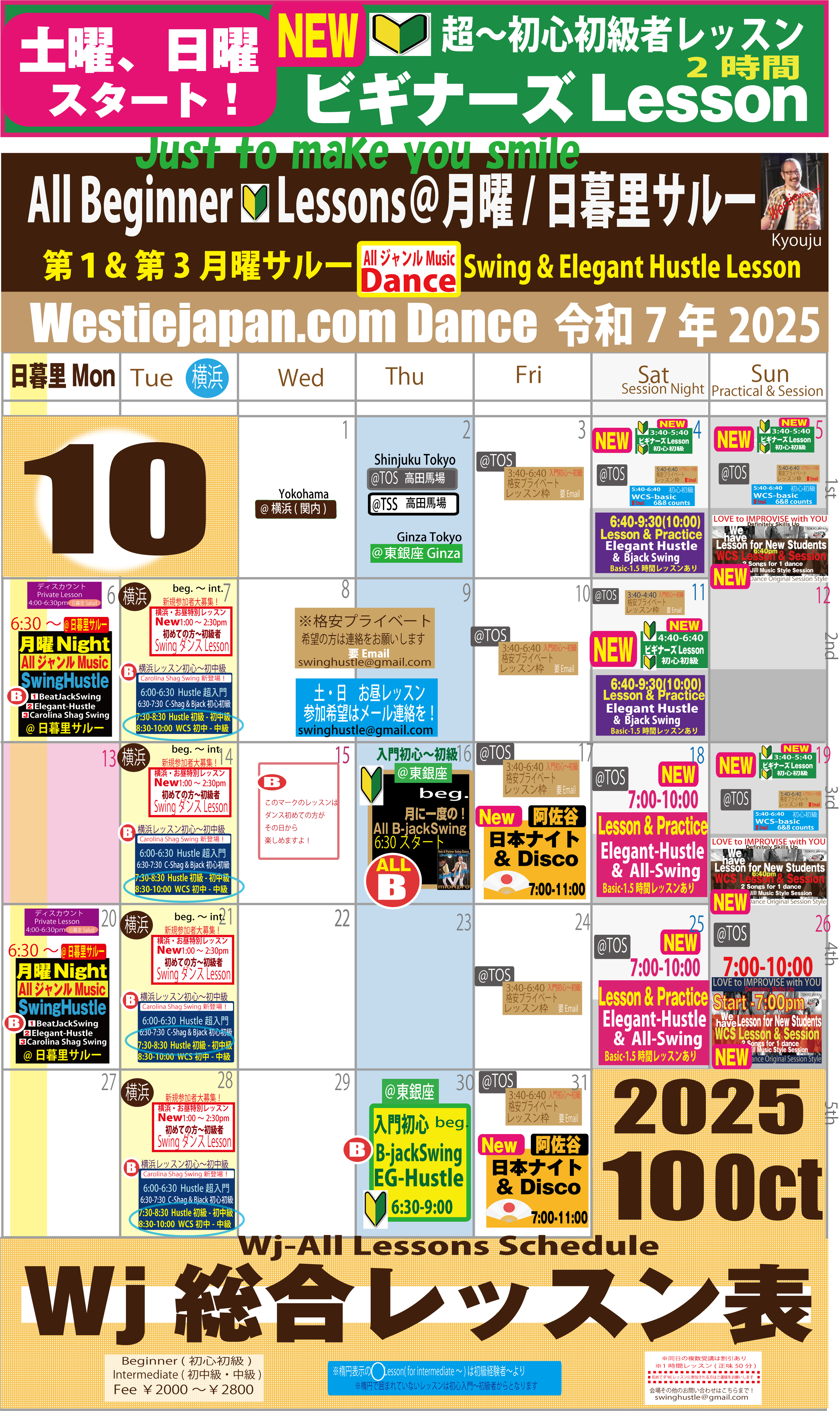 ◆Wjスケジュールには、現在4種のダンスレッスン+特別レッスン+イベント等が表示されています。