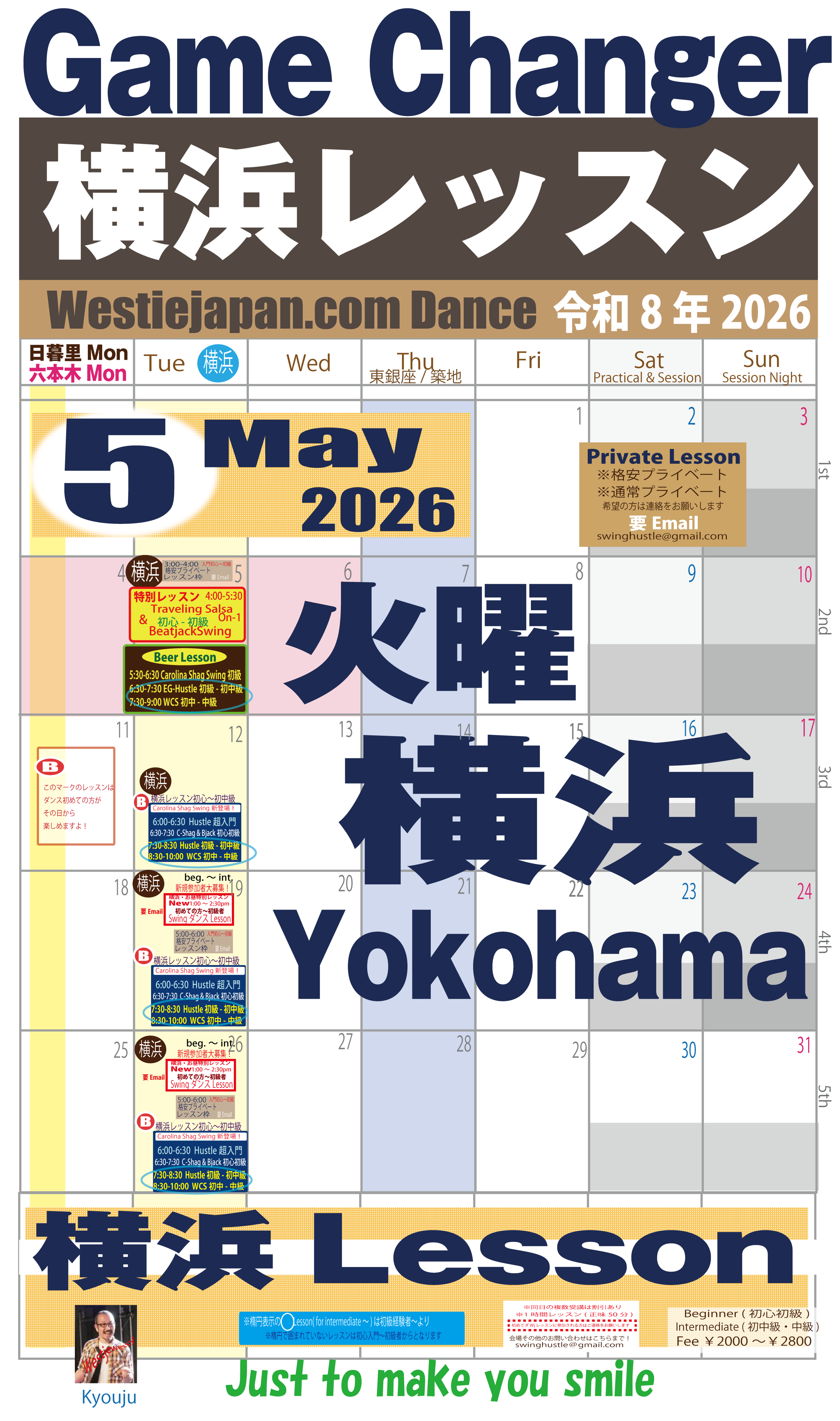①<6:00-6:30pm Hustle初心basicレッスン>