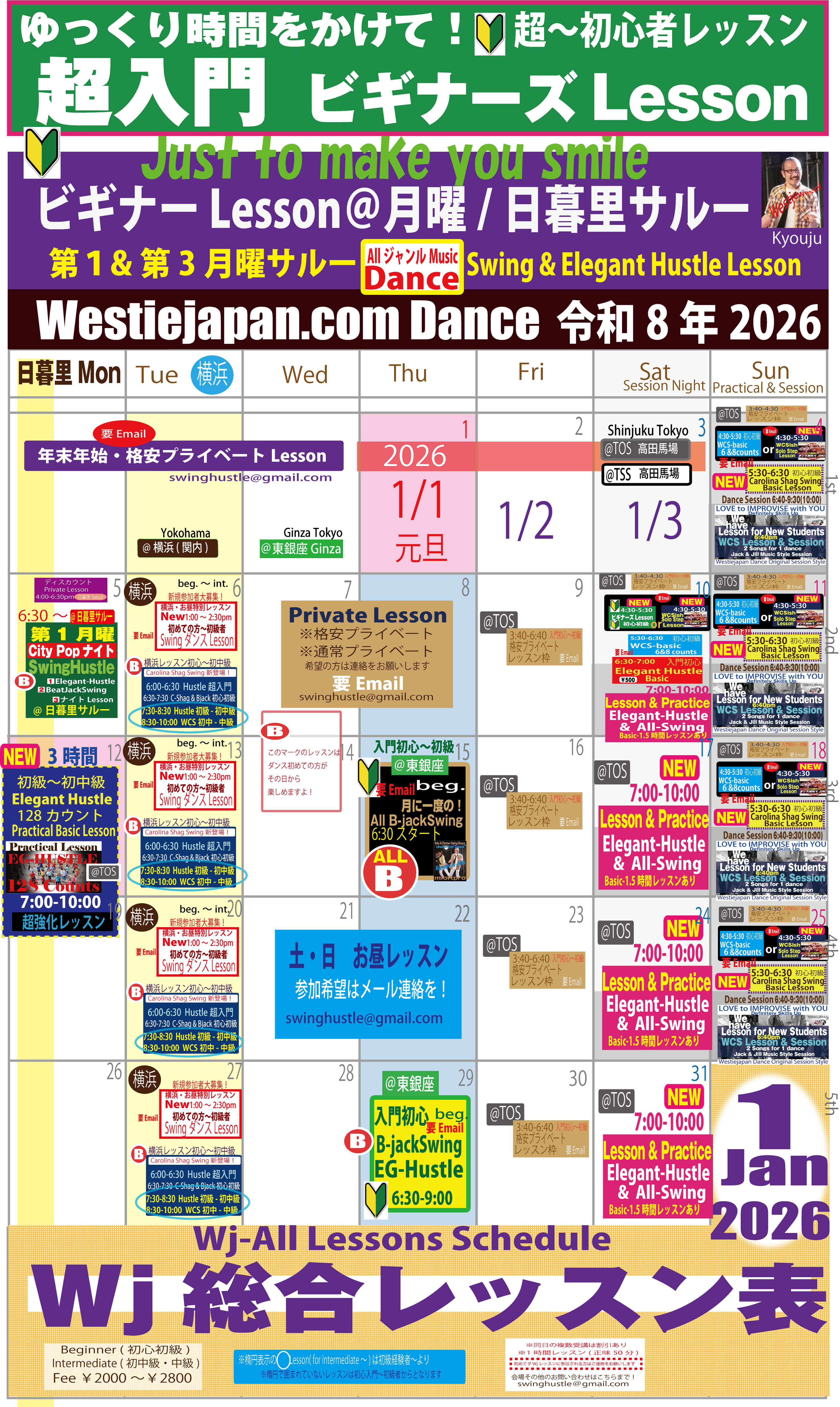 ◆Wjスケジュールには、現在4種のダンスレッスン+特別レッスン+イベント等が表示されています。