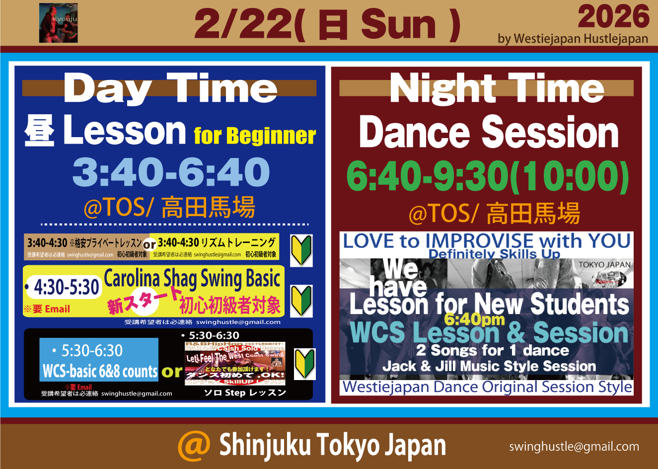 ■2/21(Sat) 【Night Time】7:00-10:00pm @TOS会場/高田馬場/Takadanobaba Tokyo