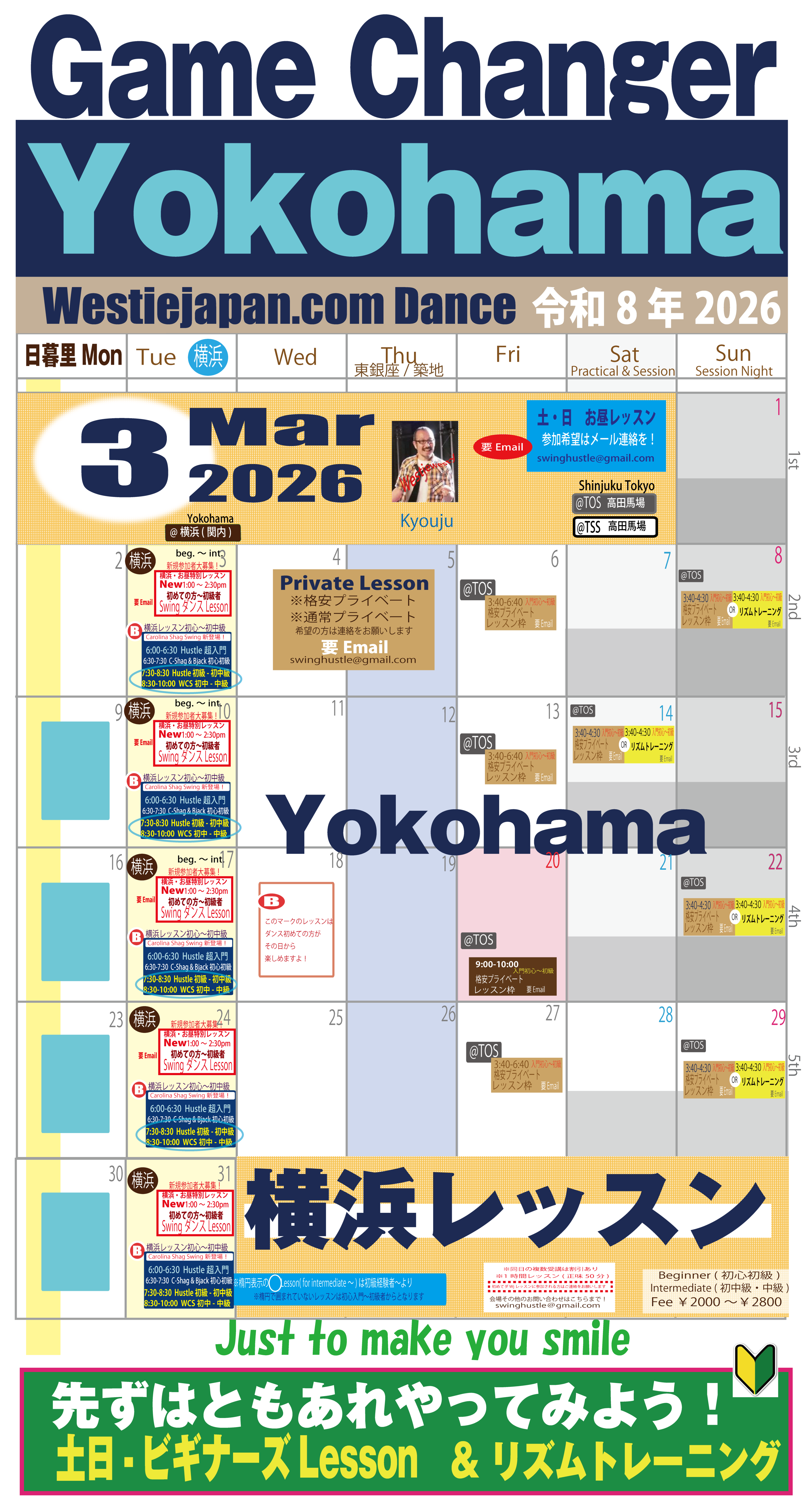 ②<6:30-7:30pm Bjack + 新登場-Carolaina Shag Swing 初心初級レッスン>